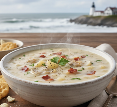 Our CLAM CHOWDER is back! Hand-crafted New England Clam Chowder is “clam forward” with Atlantic surf clams and quahog clams. A rich blend of cream, potatoes and other fresh ingredients melds together in a hearty chowder with the sweet tender clams to provide a true New England delight!