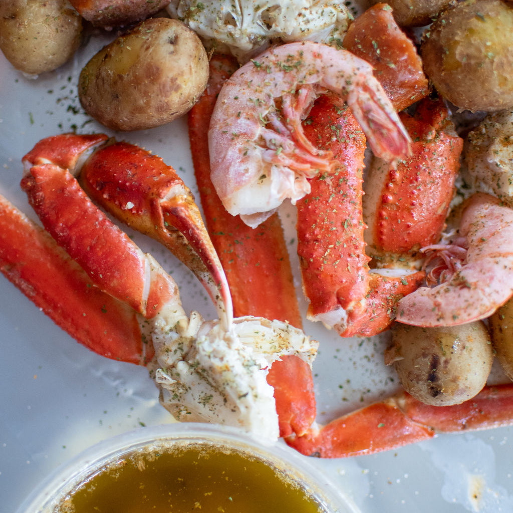 A Crab & Shrimp Boil Kit that is the best of both worlds!! Combining our Snow crab and our Wild Caught Shrimp, this is our new Customer Favorite! This Seafood Boil Kit includes: